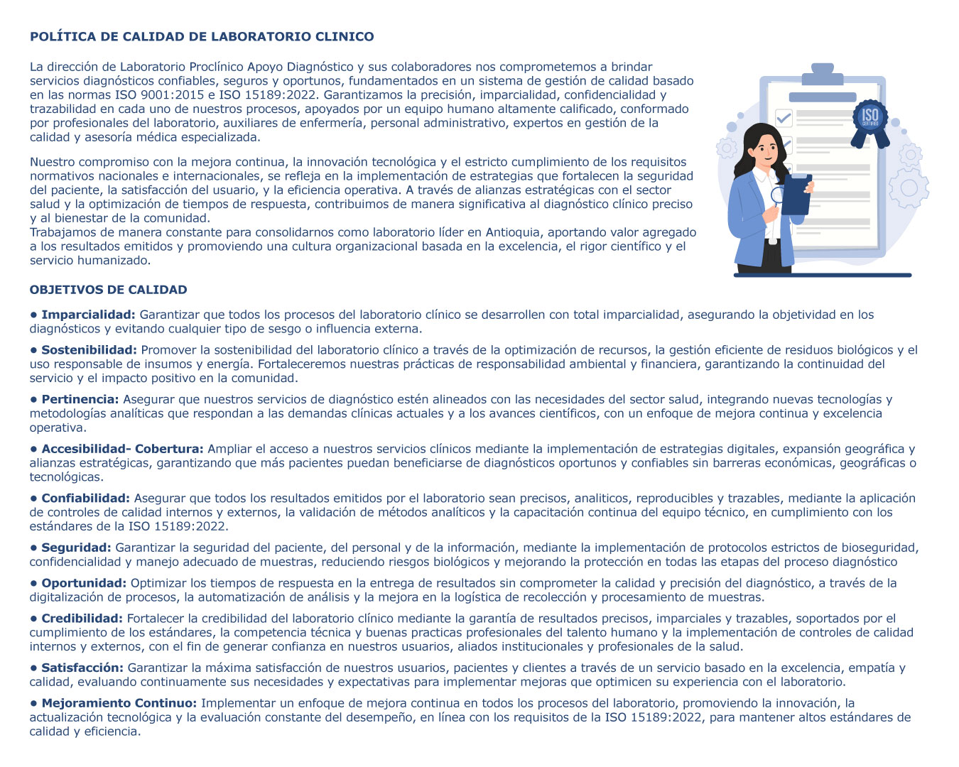 Somos un equipo de profesionales que trabaja por el bienestar de nuestros clientes poniendo a su disposición altos estándares de análisis y los más avanzados equipos con el fin de integrar las fases de preanalítica, analítica y postanalítica, respondiendo a nuestra promesa de calor humano, bienestar, seguridad y confiabilidad.